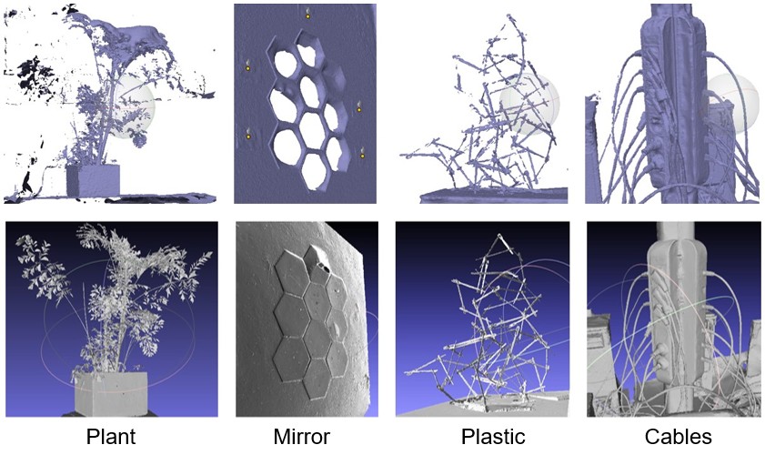 The accurate 3D reconstruction of complex datasets remains an open research challenge, particularly in the case of scenes characterized by vegetation, transparent materials, or non-Lambertian surfaces, which often lead to poor performance of standard multi-view stereo (MVS) techniques. This issue is especially relevant in the cultural heritage field, where many objects and environments such as monumental trees, historic gardens, glazed surfaces, and polished stone materials exhibit exactly these challenging characteristics. In this research, we investigate the use of novel radiance fields (NeRF, Gaussian splats) to generate tangible 3D mesh models especially in the case of challenging surfaces where traditional MVS techniques might fail. In constrast to pure radiance fields where the main objective is novel view synthesis, in this research we focus more on the use of such methods to directly create surface meshes, which can then be used for other purposes such as metric archive or HBIM.